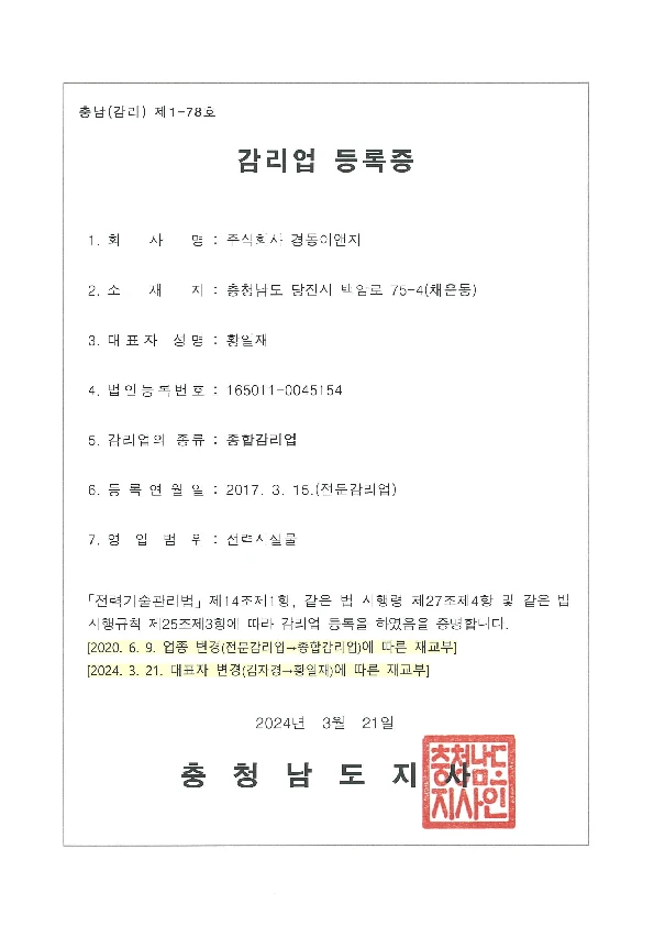 전기감리업 등록증