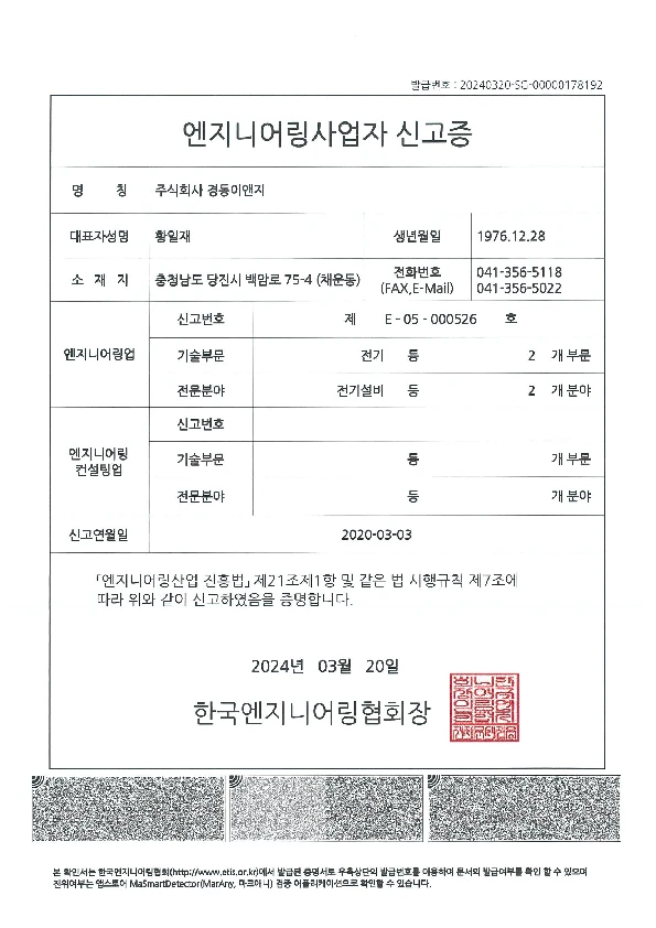 엔지니어링사업자 신고증