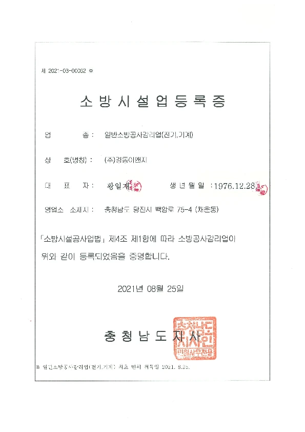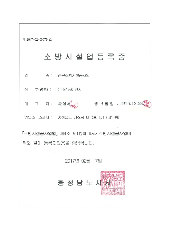 소방시설 공사업 등록증