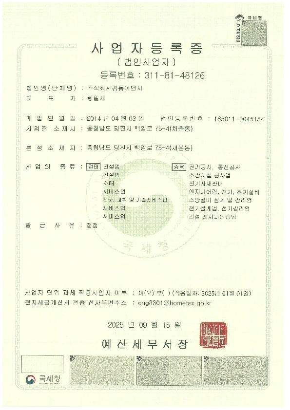 전기공사업 등록증