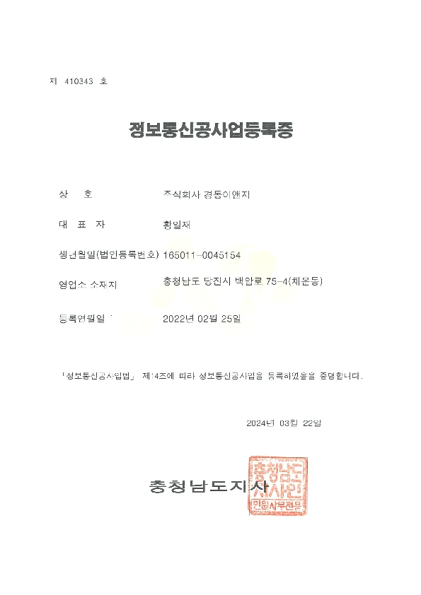 정보통신공사업 등록증