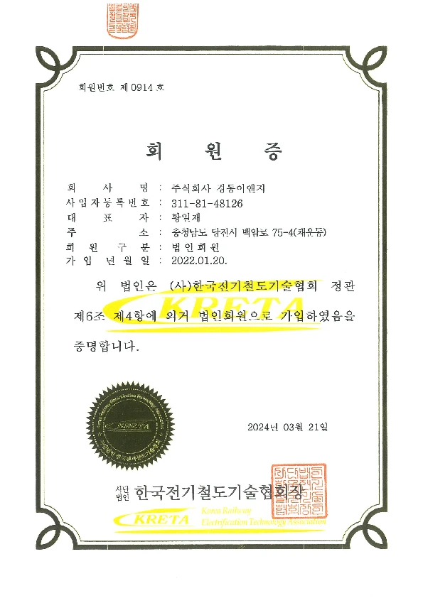 전기철도협회 회원증