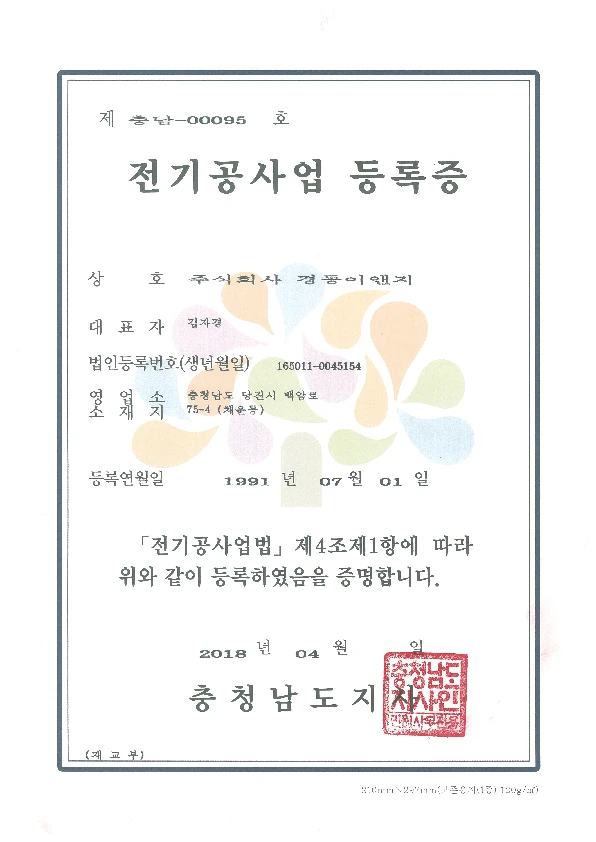 전기공사업 등록증