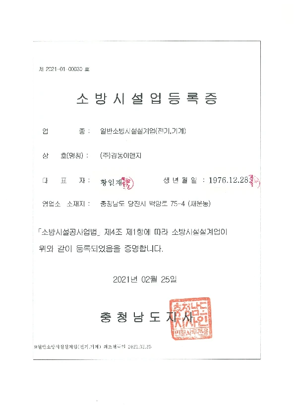 소방시설 공사업 등록증