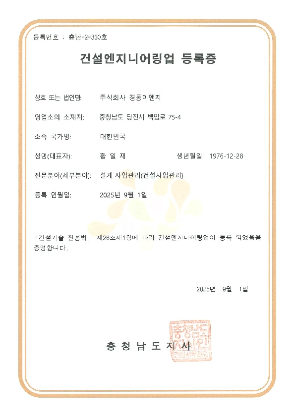 건설엔지니어링업 등록증